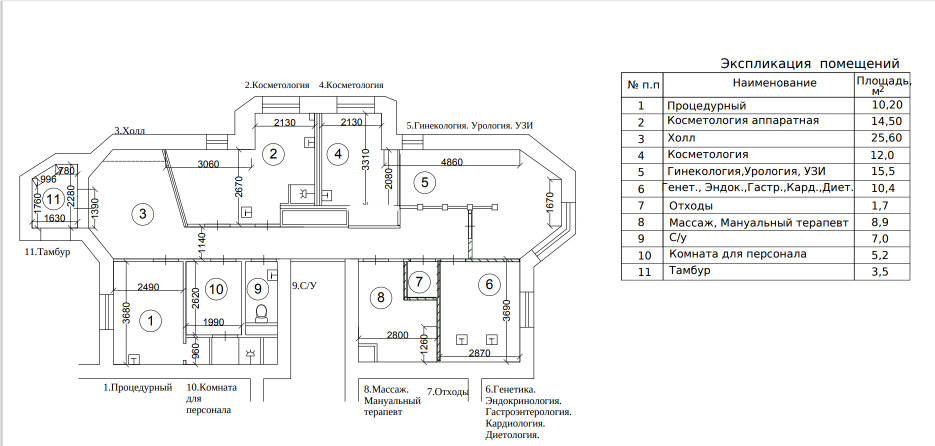 Общая площадь Клиники - 115 м2